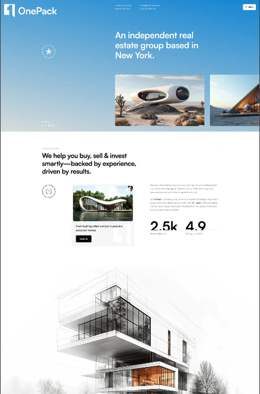Exceptional real estate designs to launch your vision. Install any property layout or template with one click.